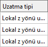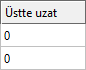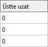 Üstte uzat ![]() Sağda tabloda Uzatma tipi Z yönü seçildiğinde işlev kazanan bu sütun, dikme elemanın üstten ne kadar uzayacağını veya kısalacağını belirler. Pozitif değer üstten uzayacak, negatif değer ise kısalacak anlamındadır. |