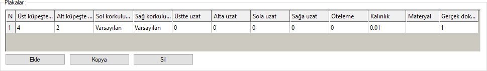 N ![]() Plakaların numarasıdır ve tanımladıkça tabloda satır numarasına denk gelecektir. |