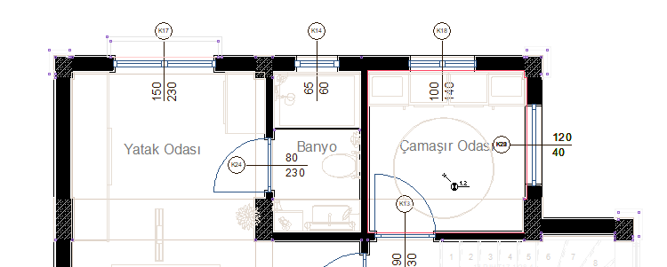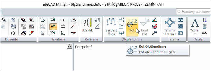 Kot ölçülendirme ![]() Plan penceresinde kot ölçüleri çizer. |