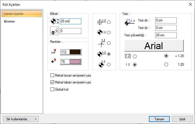 ![]() Kot ölçülendirme değeri yapı tabanına göre verilir. İşaretlenmezse değer, kat tabanına göre verilir. |
