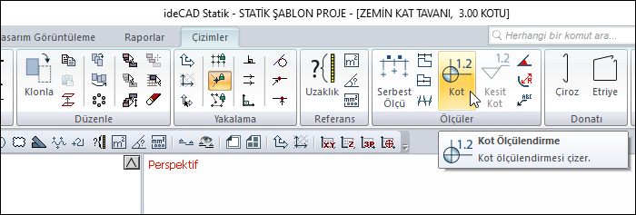 Ribbon menüde Kot Ölçülendirme ikonunu tıklayın.