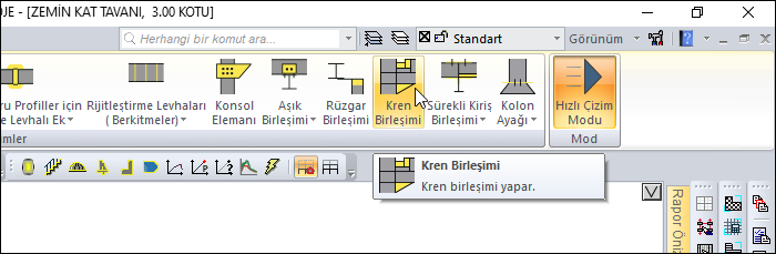 Kren Birleşimi komutu ile kolon-kren kirişi birleşimi tanımlanır.