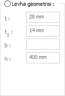 Levha geometrisi ![]() Seçenek işaretlenirse köşebent değerler girilerek belirlenir. Girilecek değerler şematik çizimde gösterilmektedir. |
