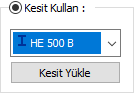 Kesit kullan ![]() Seçenek işaretlenerek hazır profillerden biri listeden seçilir. Kesit yükle butonu tıklanarak hazır kesit kütüphanesine ulaşarak Amerikan ve Avrupa hazır hadde kesitlerinin listesine ulaşılır ve listeden seçim yapılır. |