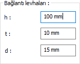 Bağlantı levhaları ![]() Bağlantı levhaları değerler girilerek belirlenir. Girilecek değerler şematik çizimde gösterilmektedir. |