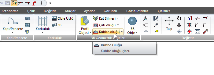 Ribbon menü Cephe sekmesi 3B Geometrik Objeleri başlığı altından ulaşabilirsiniz.