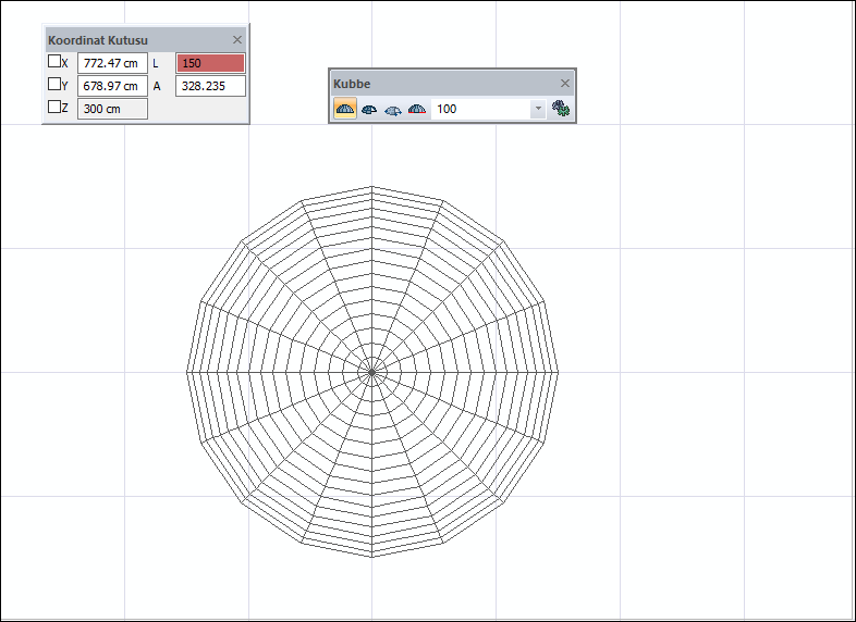 Çizim alanına farenizin sol tuşu ile tıklayın. Kubbe çizilecektir.