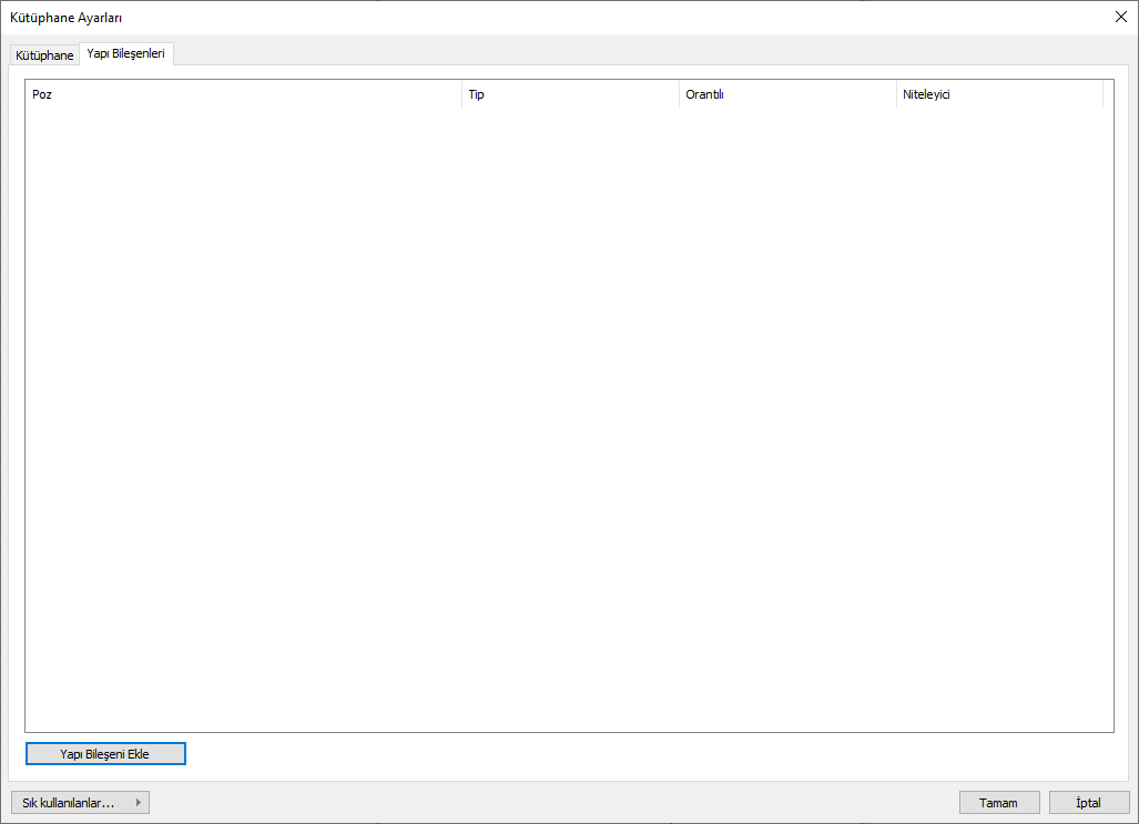 İsim ![]() Seçilen kütüphanenin ismi yer alır. Değiştirilebilir. |