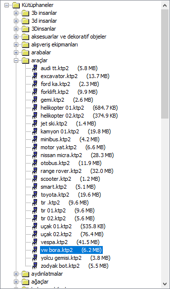 Obje listesi ![]() Tefriş elemanları, kütüphane ayarları diyaloğunda toplanmış, türlerine göre klasörler altında düzenlenmiştir. Buradan herhangi bir tefriş elemanı seçebilirsiniz. |