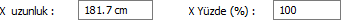 Y uzunluk/Y yüzde ![]() Seçilen elemanın Y boyutudur (boyu). Değiştirilebilir. Yapılan değişiklik tasarım ölçüleri baz alınarak yüzde olarak verilir. İstenirse yüzde değeri girilerek de obje boyutları değiştirilebilir. |