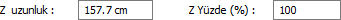 Z uzunluk/Z yüzde ![]() Seçilen elemanın Z boyutudur (yüksekliği). Değiştirilebilir. Yapılan değişiklik tasarım ölçüleri baz alınarak yüzde olarak verilir. İstenirse yüzde değeri girilerek de obje boyutları değiştirilebilir. |