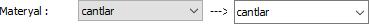 Materyal ![]() Kutucukların sağındaki aşağı ok butonları tıklandığında, ilgili kütüphane için mevcut materyallerin listesi açılır. Bu materyallerden herhangi biri fare ile tıklanıp seçilebilir. |