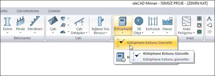 Ribbon menüde Kütüphane Kotunu Güncelle ikonunu tıklayın.