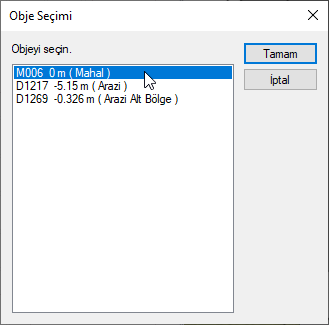 Objenin yerleştirileceği objenin (kotun) seçilmesi ![]() |