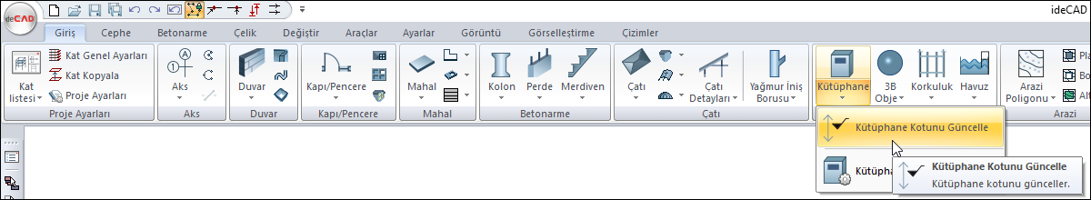 Kütüphane kotunu güncelle komutunu tıklayın.