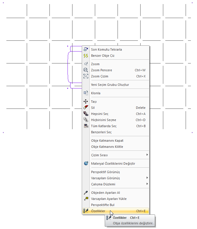Taramasını temizlemek istediğiniz objeyi seçin farenin sağ tuşuna tıklayarak açılan menüden Özellikler satırına tıklayın.