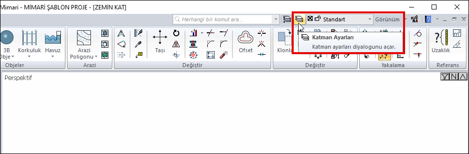 Menüden Katman Ayarları ikonunu tıklayın.
