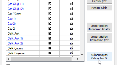 Katman ayarları diyaloğunda Kullanılmayan katmanları sil butonunu tıklayın.