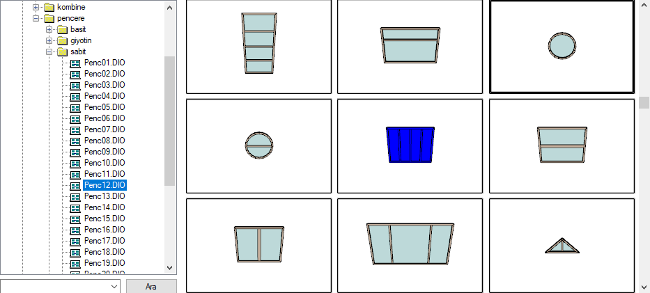 Kuşgözü penceresi komutundayken ayarlarına girilmesi, yerleştirilmek istenen pencere tipinin seçilmesi ![]() |