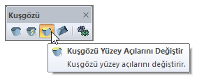 Kuşgözü yüzey açılarını değiştir komutuna kuşgözü toolbarından ulaşabilirsiniz.