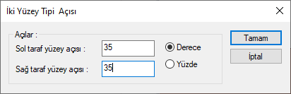 Seçtiğiniz kuşgözü tipine göre yüzey açılarını değiştirebileceğiniz bir diyalog açılacaktır.