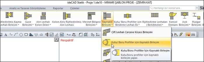 Kutu/Boru Profiller için Kaynaklı Birleşim komutu ile kolon-kiriş ve kiriş-kiriş birleşimi tanımlanır.