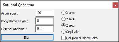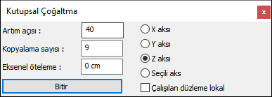 Artım açısı ![]() Çoğaltılacak elemanların arasında bırakılacak uzaklığı belirleyen açı değeri girilir. |