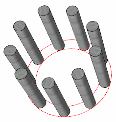 Komutun çalıştırılması ve obje seçimi Kolon, z ekseni (kağıt düzlemine dik) ekseni etrafında, çemberler boyunca çoğaltılacaktır. İç içe çemberler konu anlatımına yardımcı olması için çizilmiştir. ![]() ![]() |