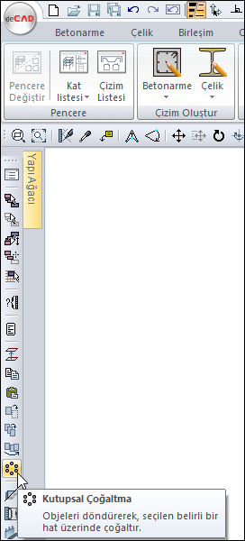 Kutupsal Çoğaltma komutu programın sol kenarında bulunan toolbardan çalıştırılabilmektedir.