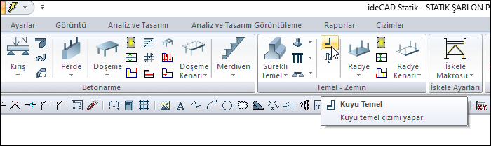 Ribbon menüde Betonarme sekmesi Temel - Zemin başlığı altından ulaşabilirsiniz.