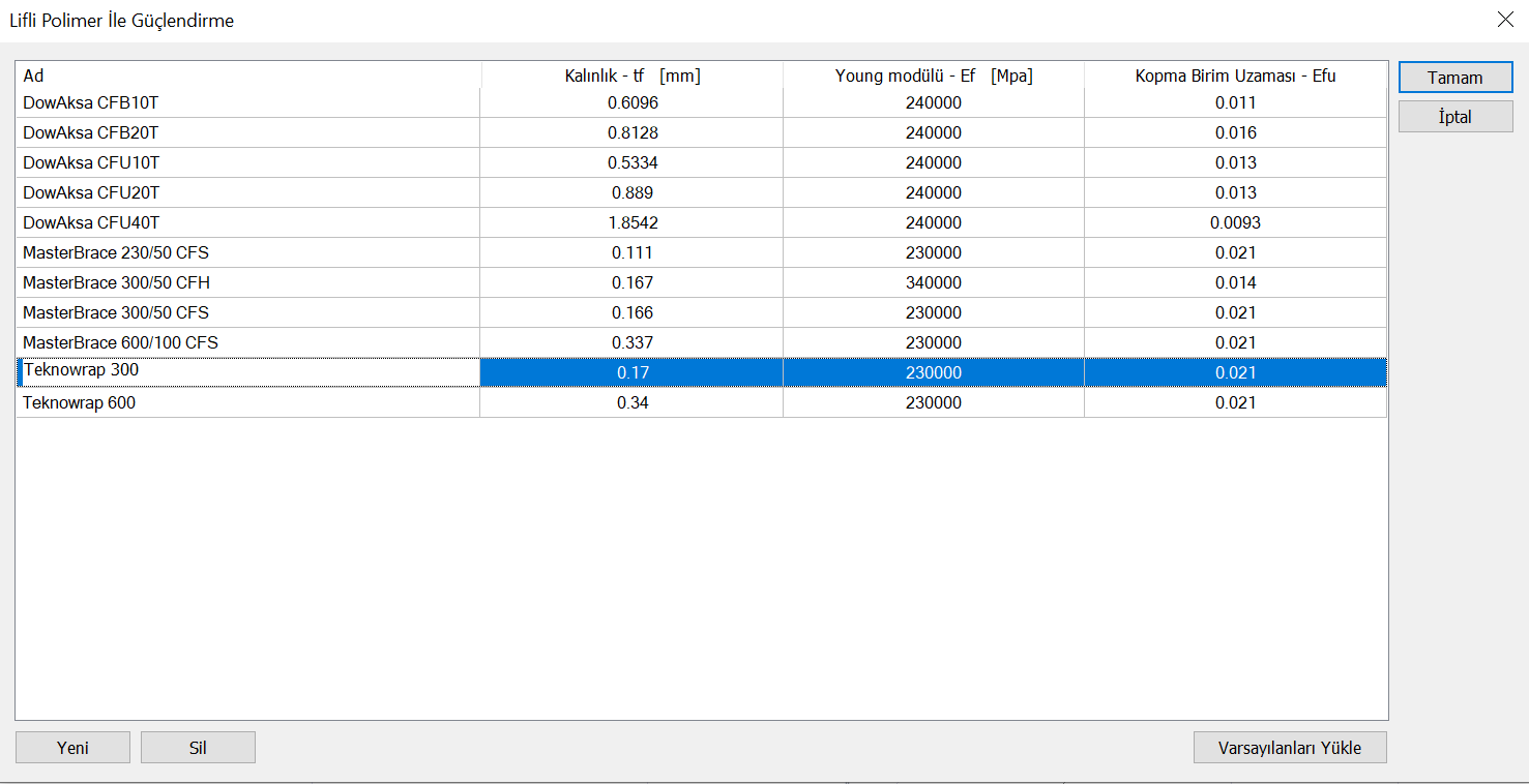 Lifli polimer olarak programda tanımlı olan Teknowrap 300 tipindeki sargı kullanılacaktır.