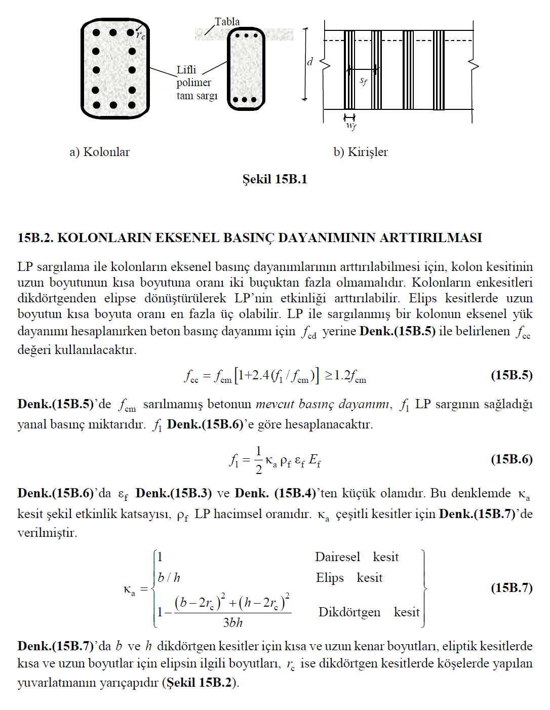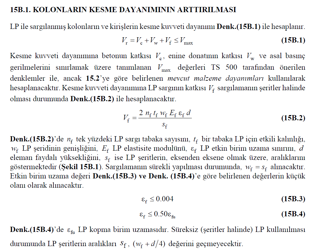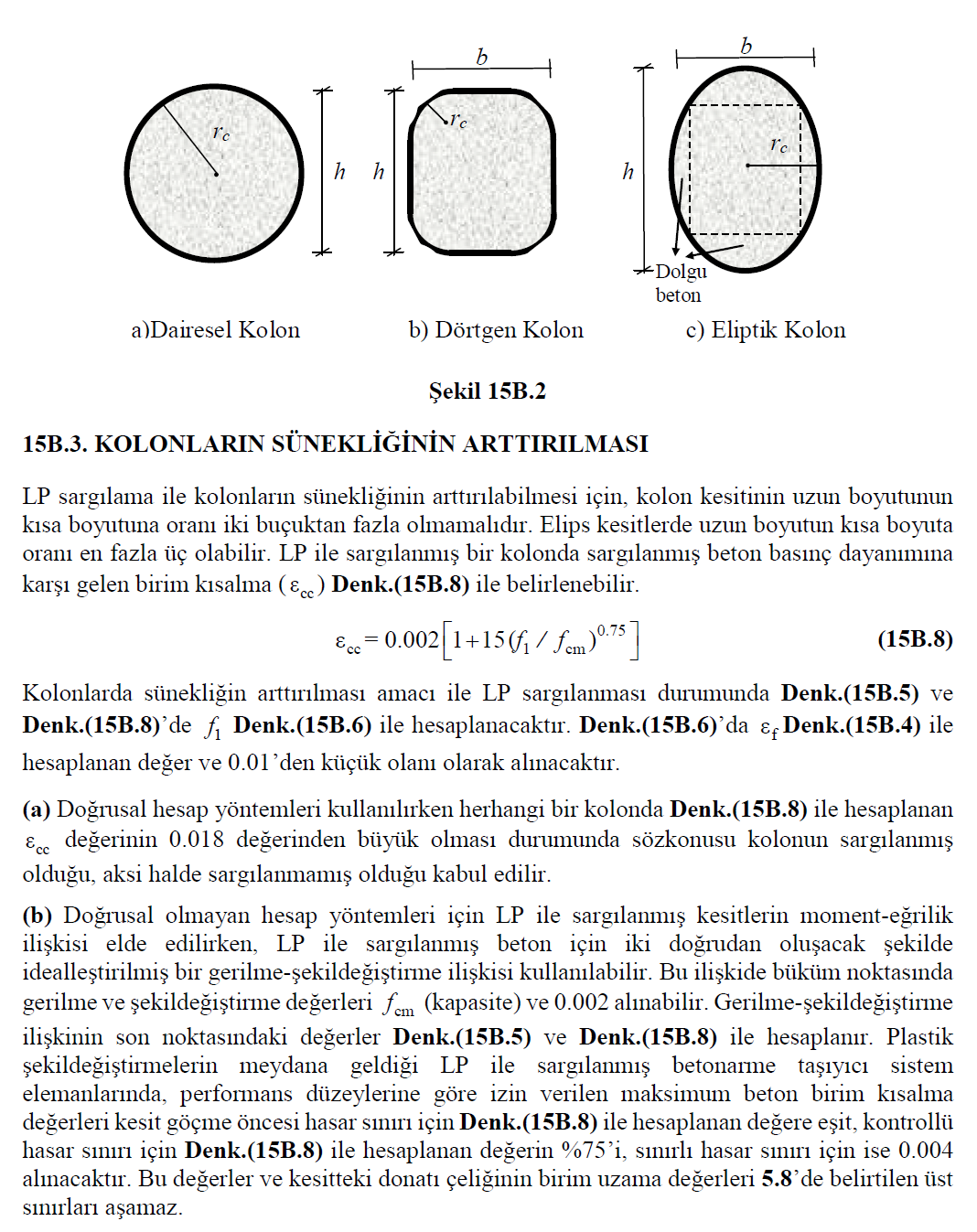 TBDY Ek 15B 'nin hesaplama ile ilgili bölümleri aşağıda gösterilmiştir.