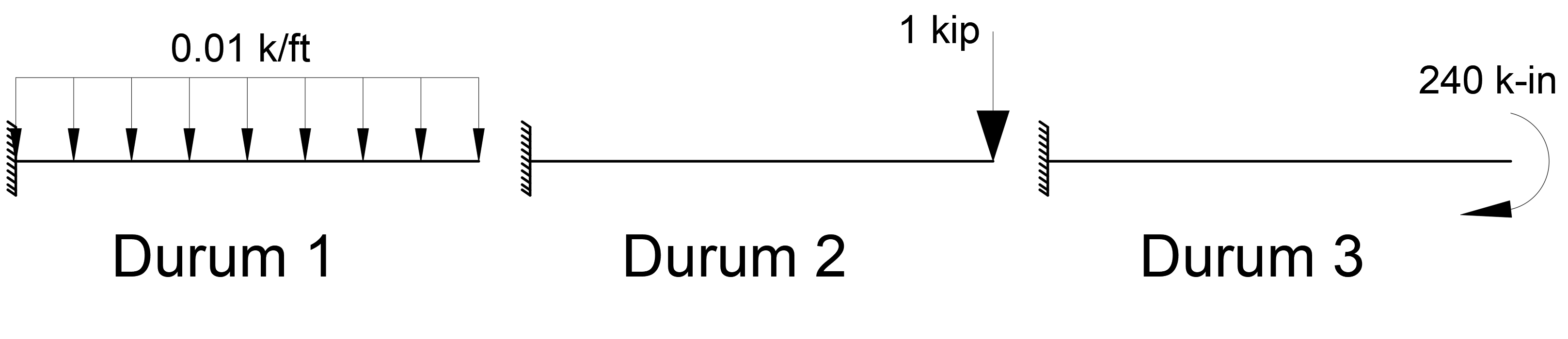 Yukarıda tanımlanan lokal ekseni 30o açıda tanımlanmış konsol elemana 3 adet yükleme durumu tanımlanmıştır. Durum 1, Durum 2 ve Durum 3 olarak adlandırılan bu yükleme durumlarında, elemanın serbest uçlarında global eksene göre Y ve Z eksenlerinde oluşan yerdeğiştirmeler hesaplanacaktır.
