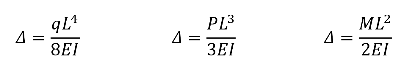 Düzgün yayılı yükleme altında konsol elemanın uç yerdeğiştirmesi, tekil yükleme altında konsol elemanının uç yerdeğiştirmesi ve tekil moment etkisi altında konsol elemanının uç yerdeğiştirme denklemleri sırasıyla aşağıda verilmiştir.