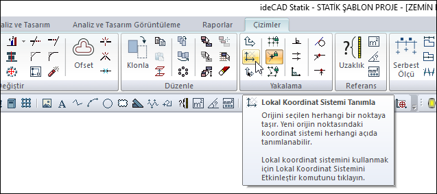 Ribbon menüde Lokal Koordinat Sistemi Tanımla ikonunu tıklayın.