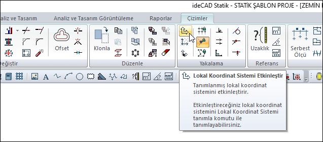 Herhangi bir aşamada Lokal Koordinat Sistemi Etkinleştir ikonunu tekrar tıkladığınızda son tanımlanmış lokal koordinat sistemi aktifleşir.