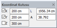 Koordinat kutusunda yazılan koordinat değerleri aksi belirtilmedikçe global orijin noktasına göredir.