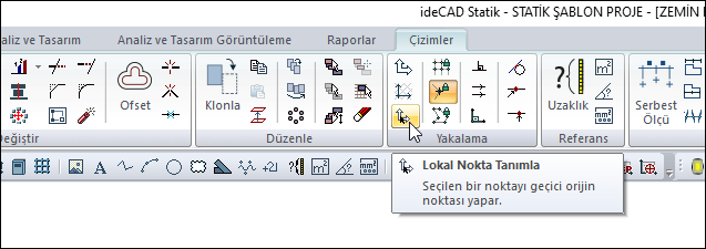 Lokal nokta tanımlama ile orijin noktası, çizim alanında farklı bir noktaya taşınır. Böylece büyük koordinat değerleri ile uğraşılmaz. Koordinat kutusuna yazılan X ve Y değerleri belirlenen orijin noktasını referans alır.