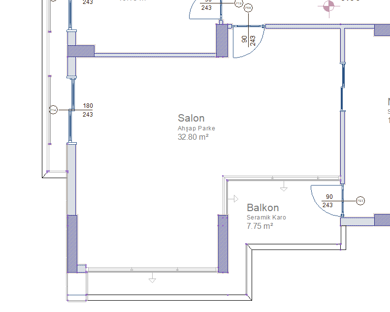Alan hesabında sıvaları dikkate al özelliği ile mahal alan hesabında sıvaların dikkate alınması sağlanır. Özellik aktif hale getirildiğinde sıvalar dikkate alınacak, alan değeri değişecektir.
