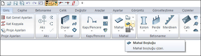 Mahal Boşluğu komutu oluşturulmuş mahaller üzerinde boşluk açmak, başka bir deyişle mahalleri yırtmak için kullanılır.