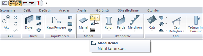 Mahallerin kenarları duvarlarla çevrilidir. Ancak bazı durumlarda (balkonlar, merdiven sahanlıkları vs.) mahallerin bazı kenarları bu elemanlarla kapatılmaz, boştadır. Bu alanlara mahal tanımlayabilmek için mahal sınırlarının bir şekilde tanımlanması gerekir. ideCAD’de bu iş için mahal kenarları komutu geliştirilmiştir. Mahal kenarları komutu ile mahal sınırı belirlenir.