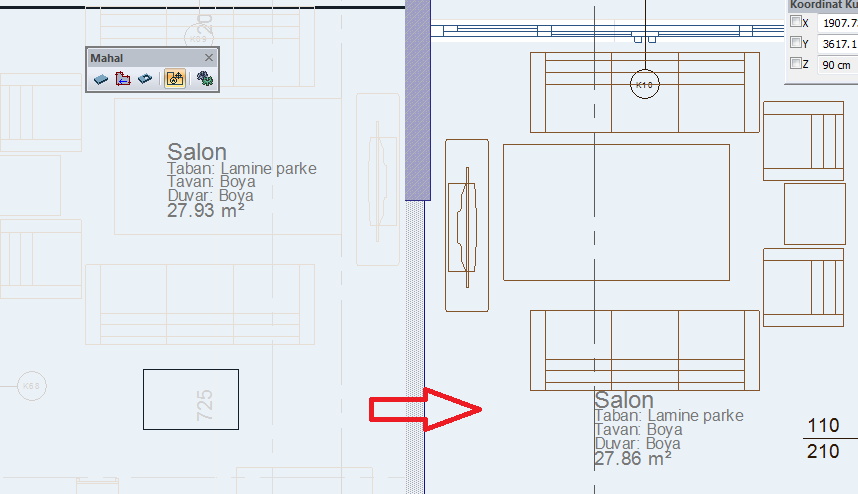 Mahal oluştururken,"Ctrl" tuşuna basıp mahal yazısının yerine karar verebilirsiniz.