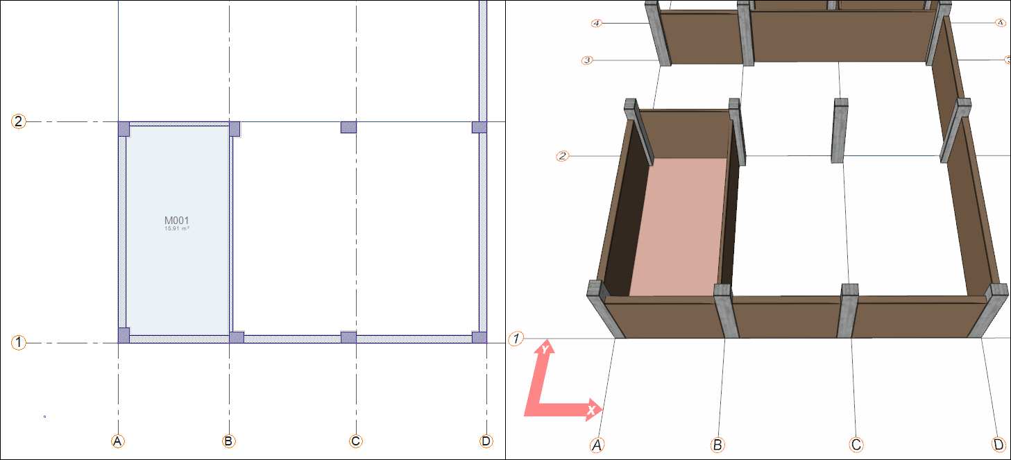 1-2 ve A-B aksları ile sınırlanan alanın üzerine farenizi götürün ve sol tuşuna tıklayın.
