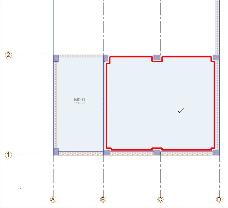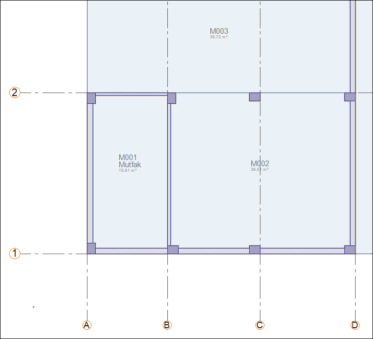 1-2 ve B-D aksları ile sınırlanan alanın üzerine farenizi götürün ve sol tuşuna tıklayın.