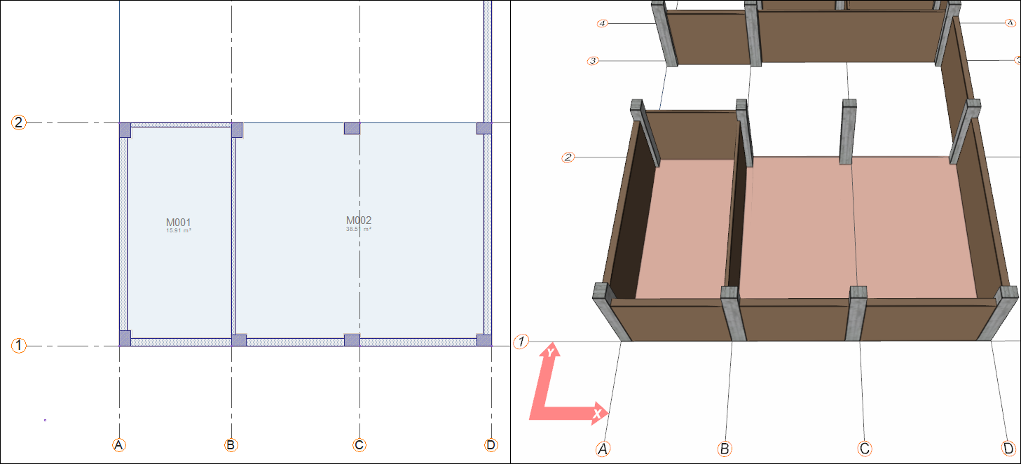 Bu bölümde yapı bilgi modellemesi kapsamında, mimari tasarımın zemin kat mahallerini modelleyin. Duvarı bulunmayan ya da eksik olan alanlara mahal tanımlamak için mahal kenarı ile sınır oluşturun.