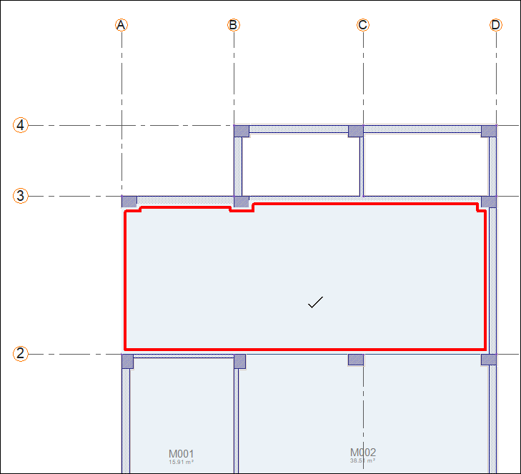 2-3 ve A-D aksları ile sınırlanan alanın üzerine farenizi götürün ve sol tuşuna tıklayın.
