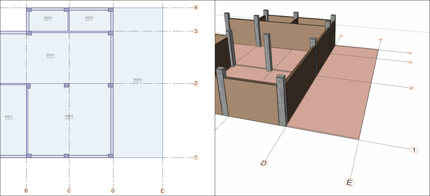 E-4 aks kesişimine tıklayın. Mahal kenarı oluşacaktır.
