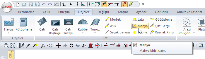 Mahya oluşturmak istediğiniz çatı kırım hattı üzerine farenin sol tuşu ile tıklayın.