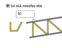 Makas Oluk ve konsol ayarları ile makasa oluk veya konsol eklenir. Çelik proje tasarımına göre mesafeler belirlenir.