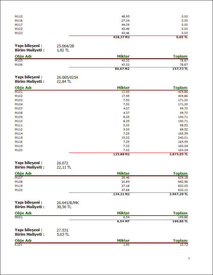 Tahmini yapı maliyeti raporu (birim maliyetler geçmiş yıllara aittir) ![]() |